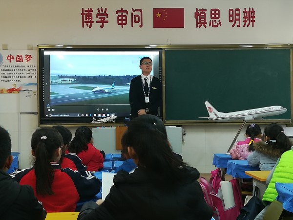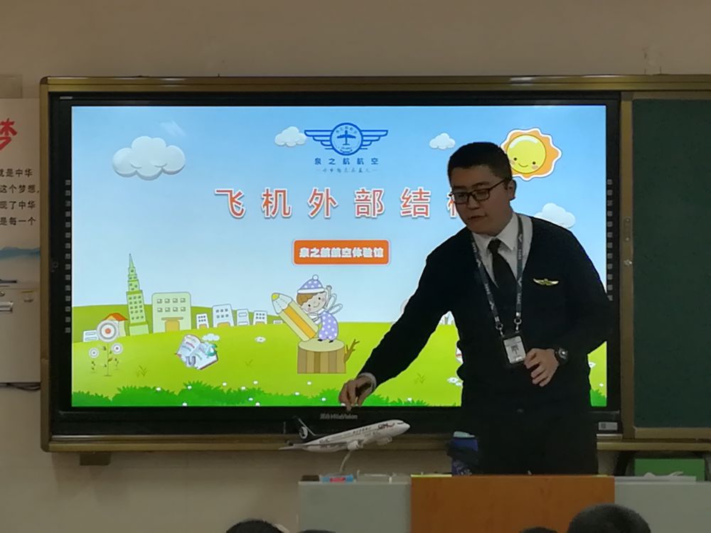 为推进飞行体验类科技项目更加大众化,培养孩子们翱翔蓝天的梦想。12月12日下午,山大附中凤凰路学校四年级二班家长邀请山东泉之航航空飞行体验馆的王老师为学生们上了一堂航空科普知识课。