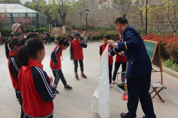 采访结束后,石队长给队员们讲解消防知识,教他们如何预防火灾以及火灾发生时如何进行逃生。最后讲解示范利用灭火器扑灭初期火灾的方法,现场手把手传授了灭火器的使用技巧。