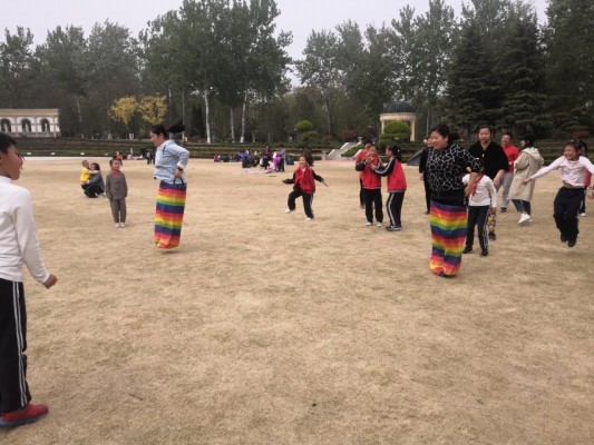 中午,大家集合野餐。在美味佳肴中,大家互相交流情感。品尝完美味的食物后,学生和家长们又一起进行了吃饼干、袋鼠跳、8 字跳绳、你比我猜、两人三足等多项快乐的亲子游戏,大家玩得不亦乐乎。