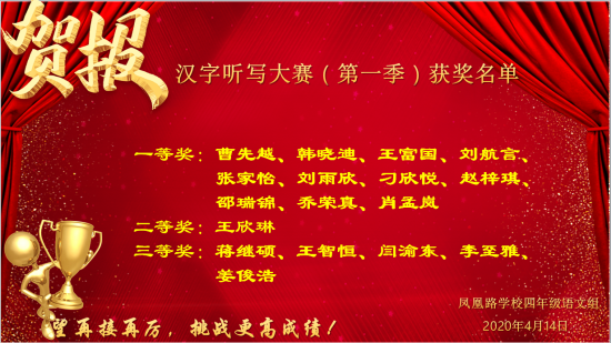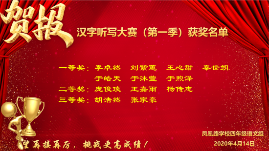 中华文化源远流长,当我们祖先使用原始工具在各种物质上记录信息的时候,这就是汉字的开始。一字、一词、一句编排着中华文化最美的音符。学生居家学习,我们来场云端大练兵,山大附中凤凰路学校小学部于4月8日、4月13日分别进行了线上汉字听写大赛的初赛和复赛。战况如何呢?一起来看一下吧!