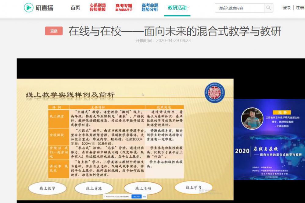 黄燕:海淀区教师进修学校罗滨校长提到,目前主要采用异步教学、同步教学相结合的方式,先学后教多了。我们需要做到以学习者的需求、实际问题的解决为导向,整合线上线下的课程资源、学习内容、学习方式,不断提升学习效果。线上教学期间,我也发现部分学生能够很好地利用自主学习时间进行学习,但部分同学存在注意力难集中,自主学习能力差等情况,两极分化比较严重,如何更好地调动学生学习的积极性,提高学习效率,也是亟待解决的问题,目前,随着学生返校,由线上教学转变为线下教学,能够在一定程度上解决线上教学存在的上述问题。但在这个过程中,作为教师我们的理念已经发生转变,线上线下相结合的混合式学习是在今后教学过程中不断推进的一种新型的学习模式,我们需要不断提升自己,从应用技术水平不断向融合育人水平转化。