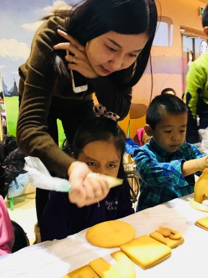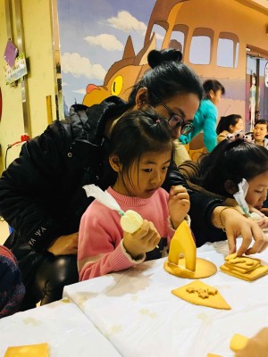 妈妈们也开心的投入姜饼屋的制作中来,大手牵小手共同制作姜饼屋。让孩子的创意和想象,搭建起自己的童话小屋,也亲身感受手工姜饼屋的幸福魔法,“姜”快乐进行到底!