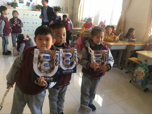 机器人的发展代表着一个国家的高科技发展水平。为了培养学生的想象能力,锻炼学生的动手能力。12月8日,一年级一班学生家长孙宁妈妈请来了机器人老师,给孩子们上了精彩的一堂义工课——机器人大比拼,孩子们与神秘的机器人朋友来了次亲密接触。