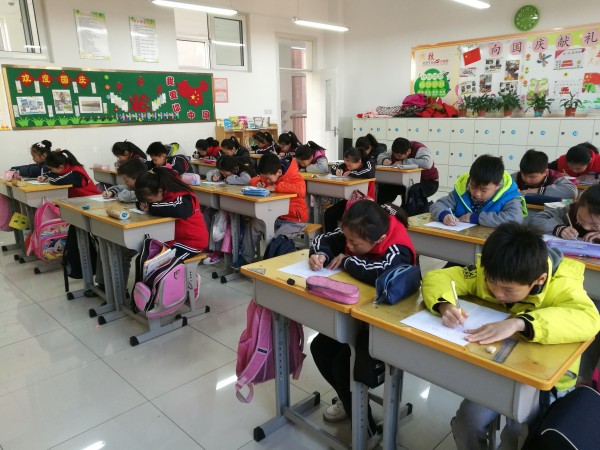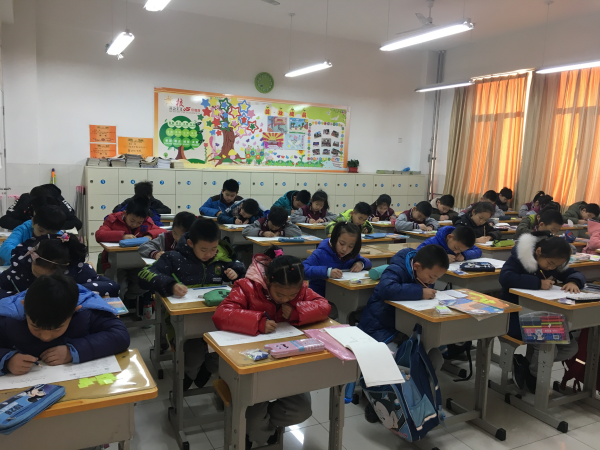 课上,老师们宣布完比赛规则后,每个同学都快速的准备好笔和纸。待老师发下试题,开始的口令一下,同学们便争分夺秒的计算起来。看,他们做的多认真!