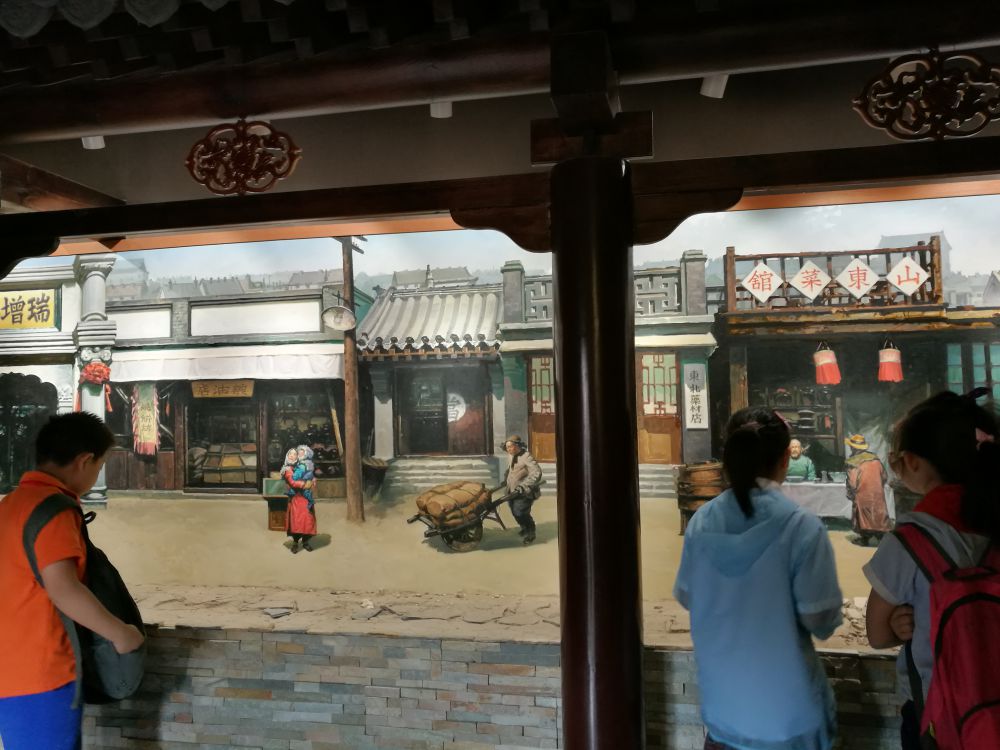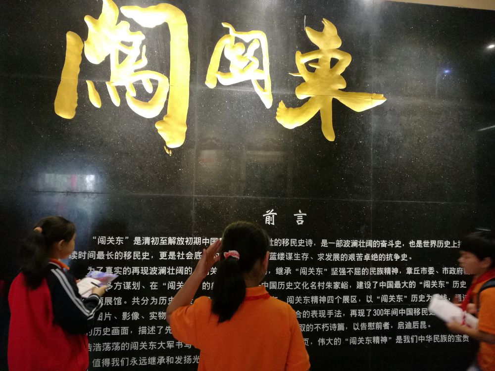 山阴小学的教室现在被改成闯关东历史展厅。欣赏着一面面的浮雕,一件件的老物件,队员们用笔不停的记录着,体会着当时的艰辛历程。