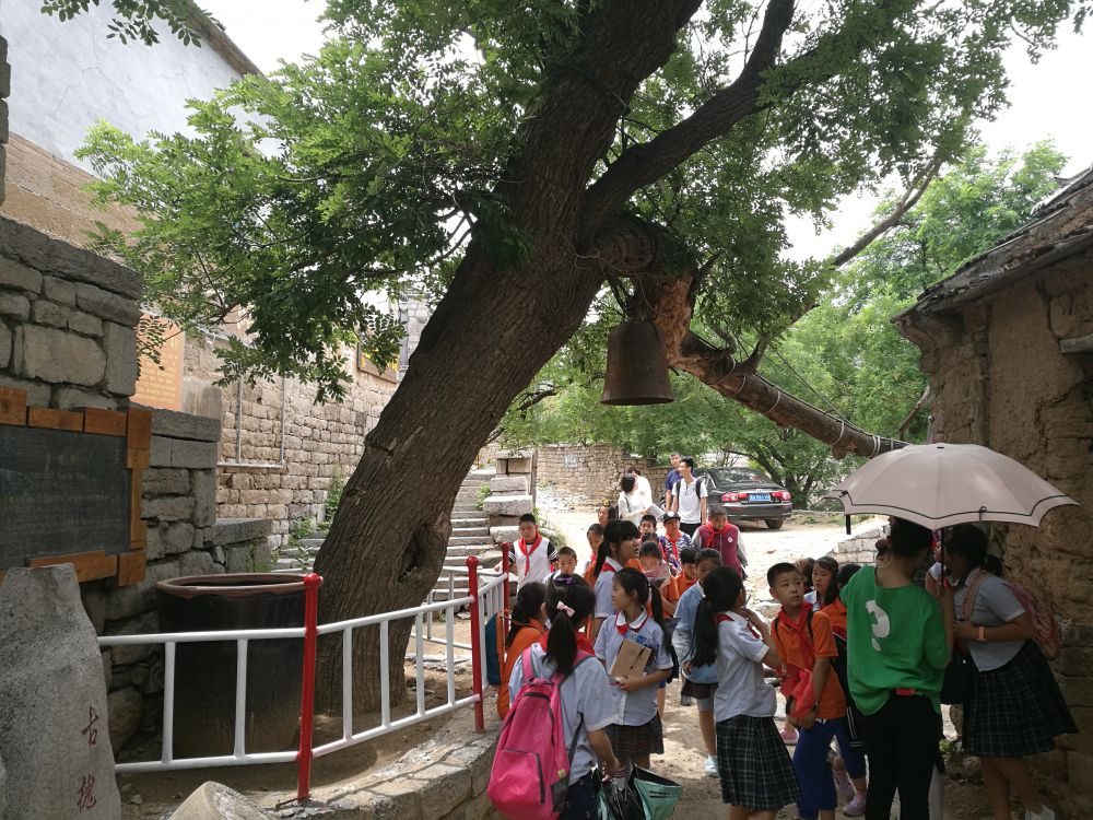 走出山阴小学,队员们又先后了解了黄石洞,朱氏家祠、关公庙、进士故居、女子学堂、康熙立交桥、朱开山旧宅、660岁的老榆树等朱家峪的历史古迹